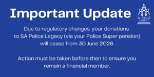Important update regarding your SA Police Legacy donations via Police Super pension. Due to regulatory changes, Police Super will no longer be able to facilitate